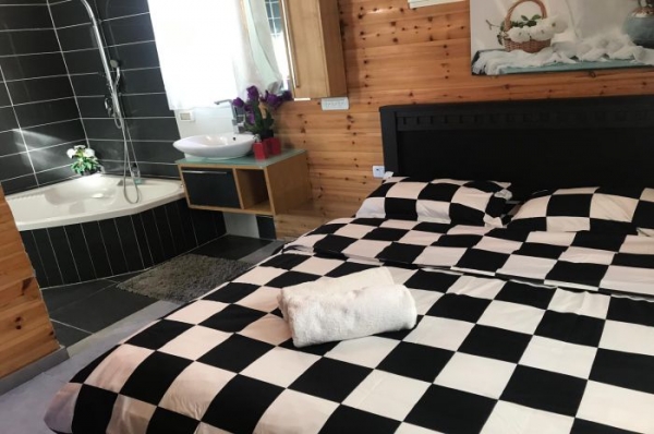 חדרים לפי שעה בנהריה- סוויטות יוקרתיות וצימר עץ רומנטי שוכנים על 10 דונם פרטיים בעיר נהריה בלב סביבה פסטורלית ונקייה. בצימר: יחידת סטודיו רומנטית, מיטה זוגית מפנקת, טלוויזיה, חדר רחצה מודרני, ג'קוזי כפול, מטבחון, פינת סלון ופינת קפה.